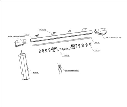 Motorised Curtain Tracks consist of a Curtain Motor on end of the track in the corner. |